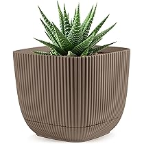Flower Pot Large Brown Planter 11 X 11 Cm Ribbed Plant Pot With Saucer Basil Pot Amazon De Garden